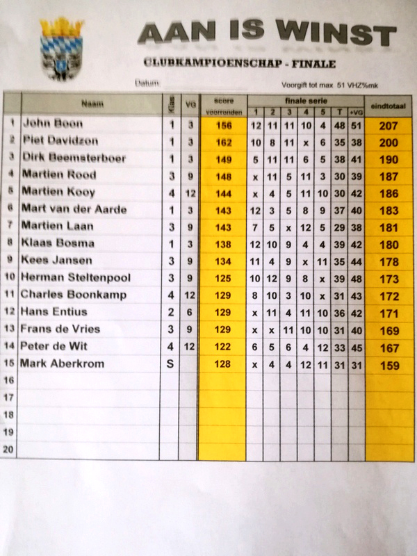 Zondag 24 oktober is alsnog de finale van het uitgestelde clubkampioenschap gespeeld. Na de week ervoor de eerste 10 slagen te hebben gespeeld was het zondag tijd voor de volgende 5 slagen