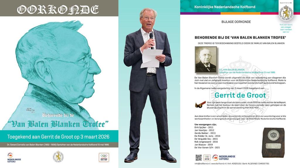 De Van Balen Blanken Trofee uitgereikt aan Gerrit de Groot 1 reactie / 2-Bondsnieuws / Door Jan Blaauw Tijdens de Algemene Ledenvergadering van 3 maart 2026