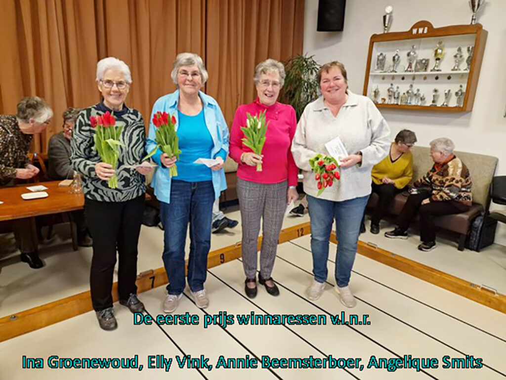 De 3de klasse, daar begon Annie Beemsterboer met 75 punten, Wil Vet 76 en Gina Schets 78 punten, alle 3 uit Berkhout aan hun finale serie.