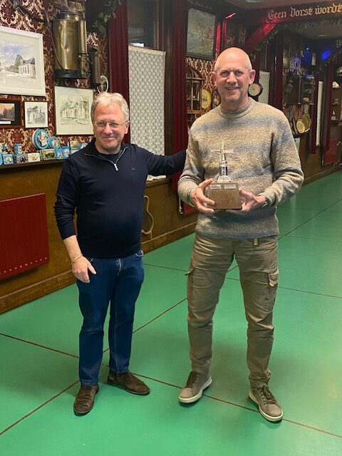 Peter en George waren toch nog van slag en speelden matig vergeleken met de voorronde de uiteindelijke winnaar werd George met een totaal van 148 punten Peter eindigde als tweede met 140 punten en Maarten derde met 132 punten. De dames konden dit geweld net niet bijbenen Gerda Jonker kwam er het dichtste bij met 124 punten al met al was het weer een mooie wedstrijd.