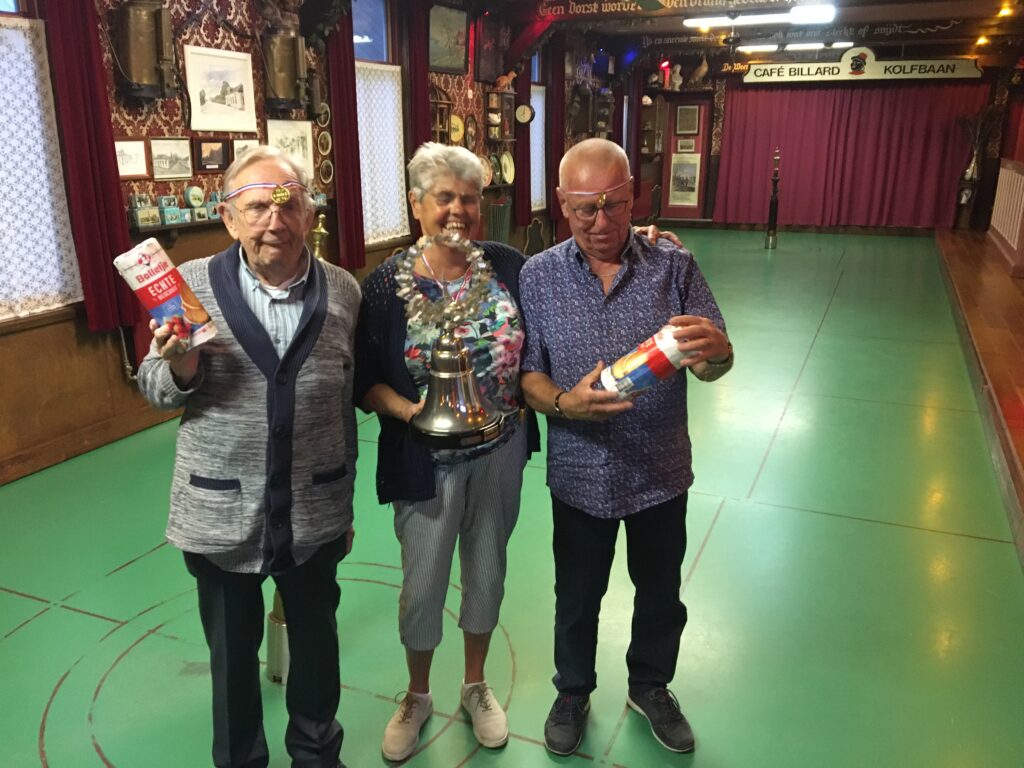 De operatie van Leo heeft hem niet de overwinning gebracht waarop hij gerekend had. De Beschuittoren beker is met overmacht gewonnen door Gerda Jonker. Gerda sloeg alles goed. Het maakte niet uit waar de bal lag. Een meter van de paal of twaalf meter. Zij sloeg altijd minimaal dubbele cijfers. Ze won met 102 punten. Derk Jan Klappe was tweede met 82 punten. 20 punten verschil met nummer twee, dat is in geen jaren voorgekomen. Als derde eindigde Jan “dun durven spelen” Vliek met 79 punten De vernedering van de mannen had nog erger gekund. Halverwege de wedstrijd stond Gerda eerste met 51 punten. Op de tweede plaats stond Vera Plas met 49 punten. Deze dame is 92 lentes jong en stond als een jonge hinde te spelen. Helaas was de wedstrijd iets te lang voor haar waardoor ze later iets terug viel in het klassement maar zij bleef menig heer voor in de eindklassering.