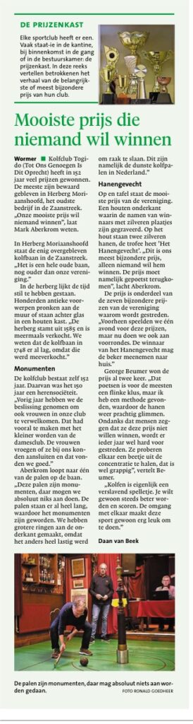 Het Noord Hollands Dagblad duikt in onze prijzenkast / 1-Verenigingsnieuws / Door Mark Aberkrom Zaterdag 14 december stond dit artikel in het NHD in de rubriek De Prijzenkast.