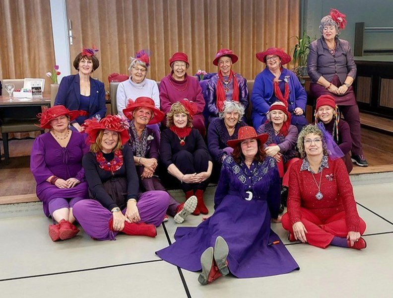 De dames zijn lid van: Red Hat Society. Je kunt op hun eigen website verder kijken wat ze zoal doen… www.alkmaarserodehoeden