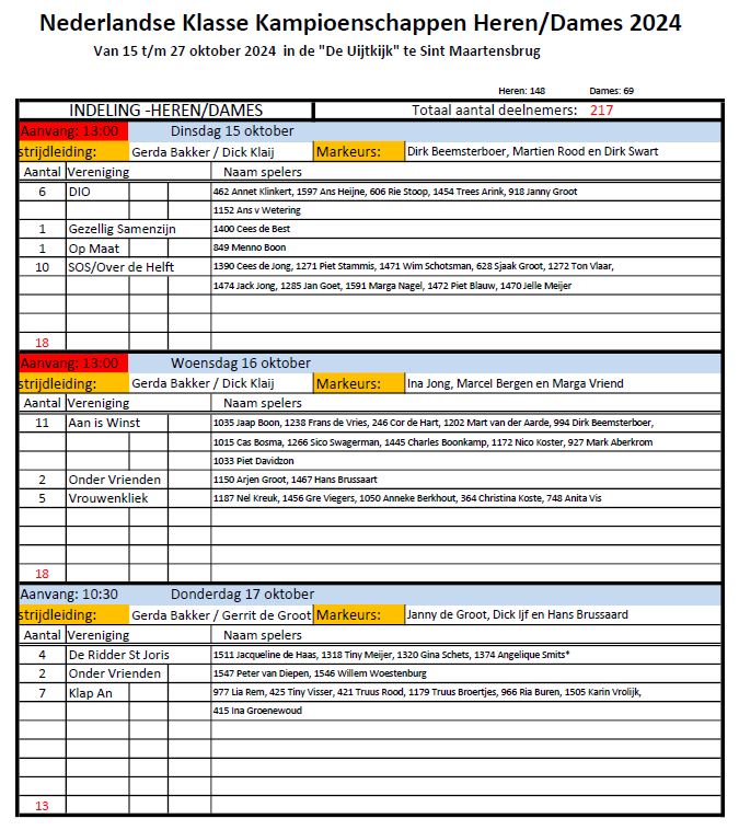 In de bijlage vinden jullie de laatste versie van de indeling, daar waar wijzigingen zijn is degene die het betreft op de hoogte.