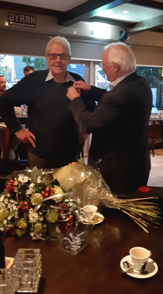 Tevens was de voorzitter van de KNKB aanwezig die hem een mooie bos bloemen, een gouden kolfspeldje en 2 flessen wijn overhandigde.