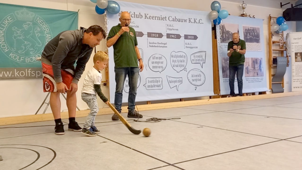Alvorens er gespeeld kon worden, werd de heropening verricht door de 4-jarige kleinzoon KOBUS van de in 2019 overleden initiatiefnemer en mede-oprichter van de kolfclub Sjon de Keijzer. Met een puntenslag gaf de kleine Kobus blijk ook over het talent te beschikken van Kobus Hoefnagel, die in september 1918 als kastelein in Cabauw Nederlands kampioen van de Koninklijke Nederlandsche Kolfbond werd.