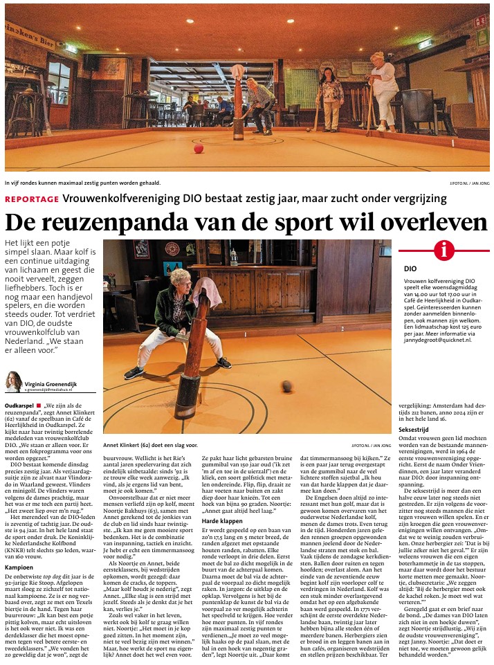 Vrouwenkolfvereniging DIO bestaat zestig jaar, maar zucht onder vergrijzing; uit het Noordhollands dagblard d.d. 5-10-2024