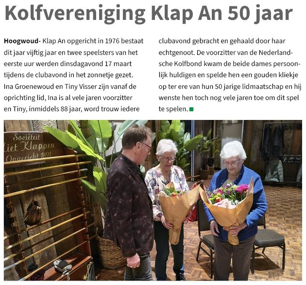 KOLFVERENIGING KLAP AN 50 JAAR Laat een reactie achter / 1-Verenigingsnieuws, 2-Bondsnieuws / Door Jan Blaauw Uit het Regionaal Nieuws ‘de Kogge’ van 25 maart 2026