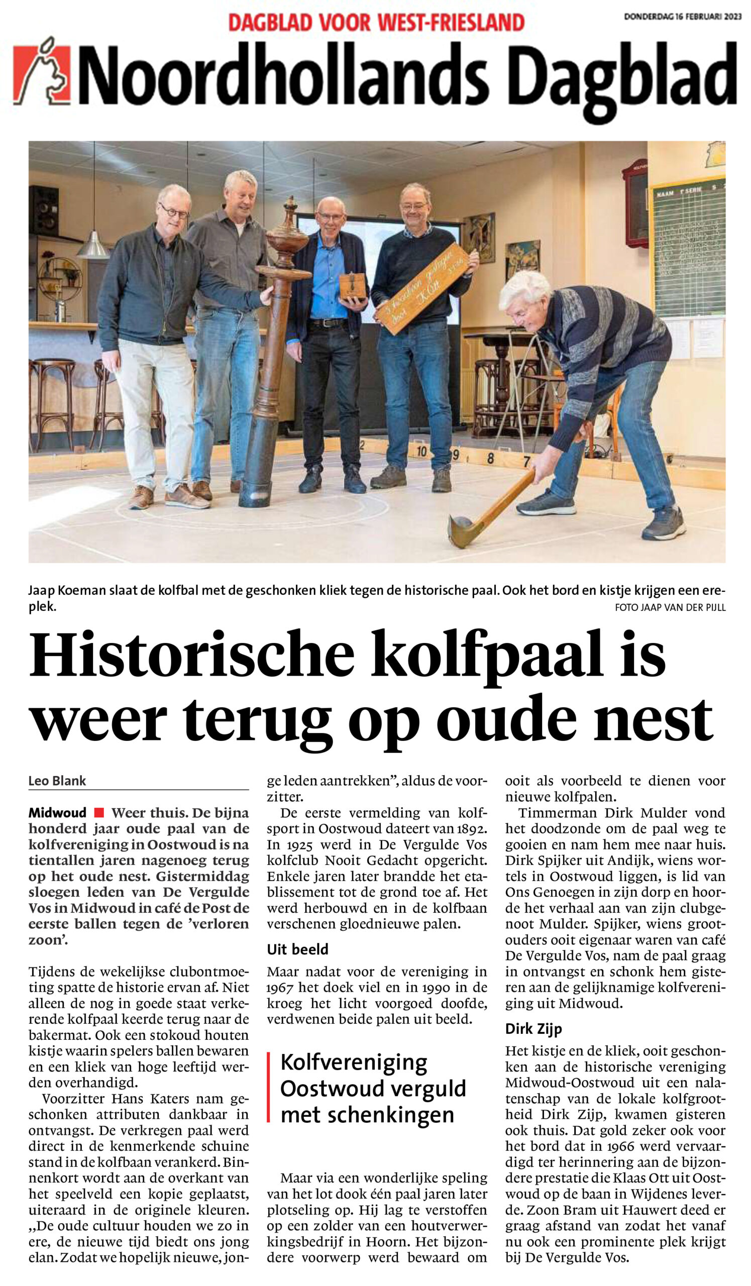 Kolfvereniging Oostwoud verguld met schenkingen