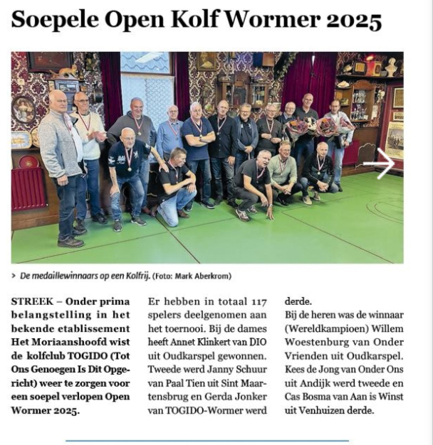 Diverse media vermelden het Open Wormer 2025, maar in de Orkaan staan we gewoon tussen de grote sportuitslagen. We zijn natuurlijk een grote sport !
