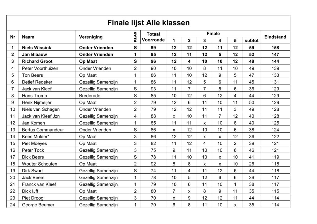 Succes “Onder Vrienden” op de Langedijker / 1-Verenigingsnieuws / Door Jan Blaauw Niels Wissink – kampioen in de Superklasse en overall-kampioen Jan Blaauw – kampioen in de 1e klasse Peter Voorthuizen – kampioen en Niels van Schagen 3e in de 2e klasse René Bruin – 2e en Roy Zegers3e in de 4e klasse