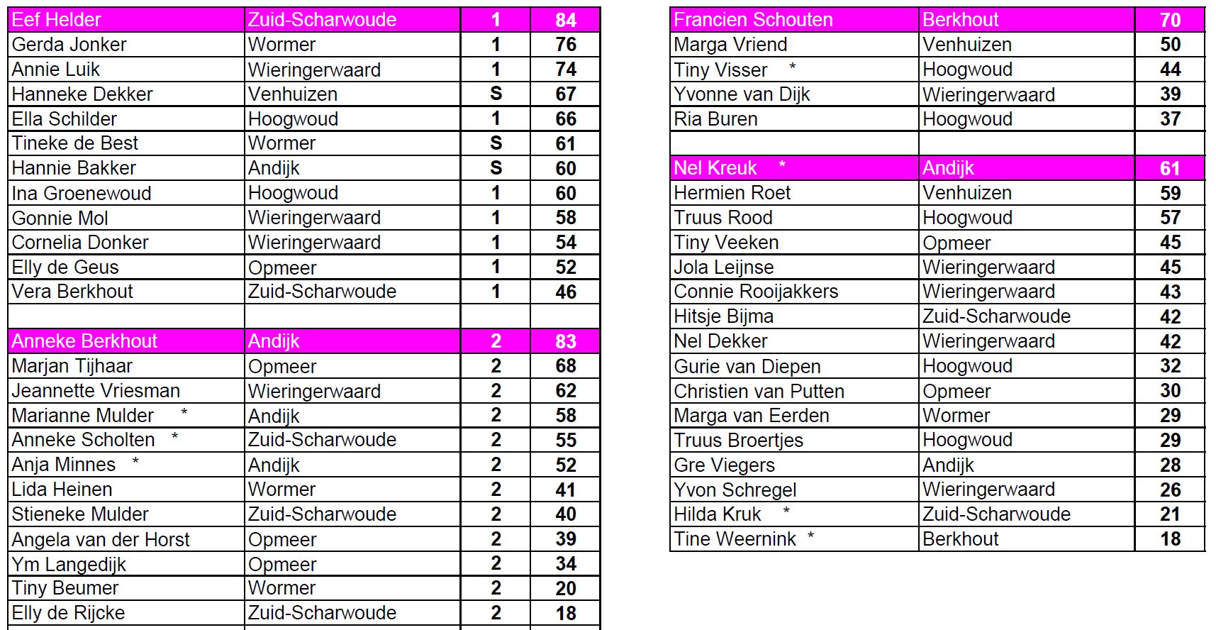 Tussenstand Gouden Tientjes Dames / 3-Wedstrijdberichten / Door Jan Blaauw Tussenstand Gouden Tientjes Wedstrijd 6-2-2025