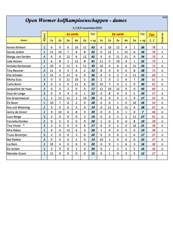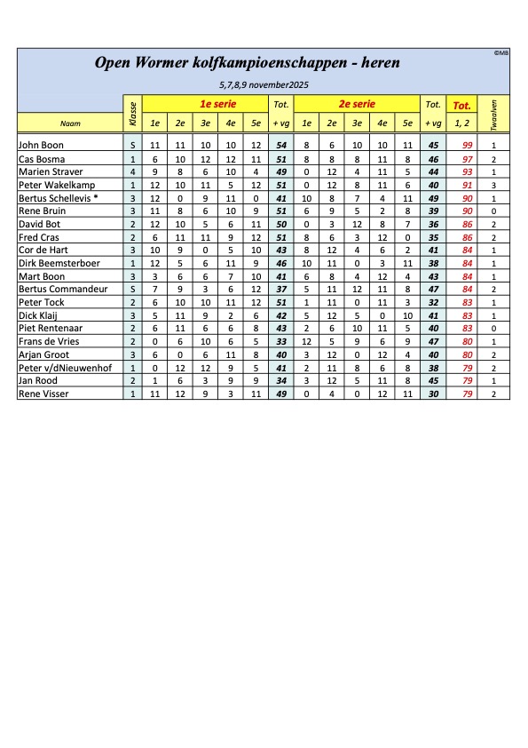 Tussenstand Open Wormer 2025
