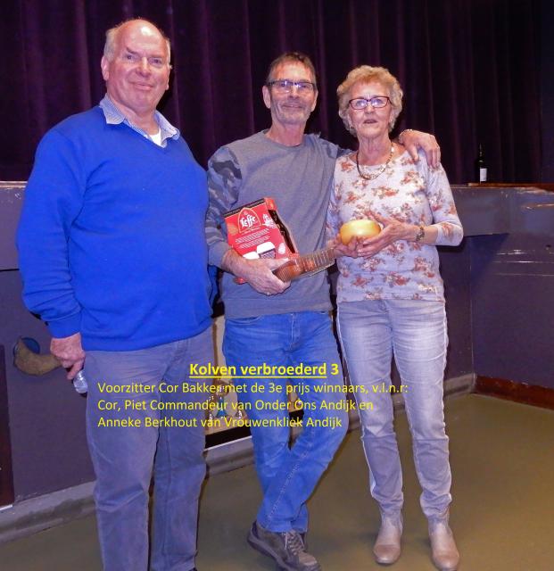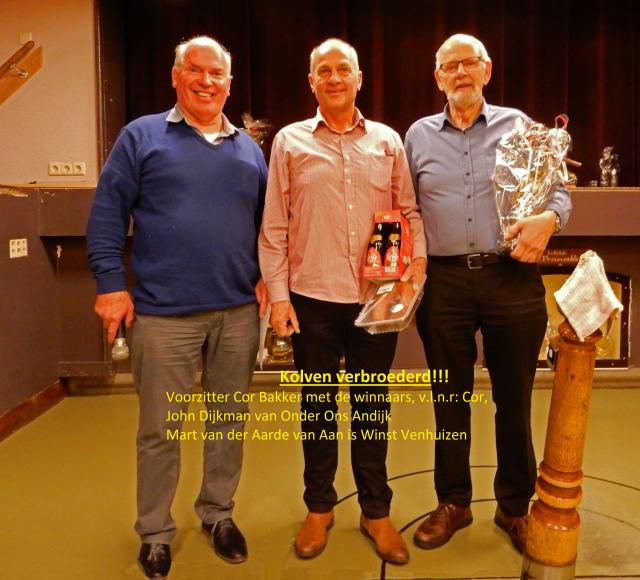 Met deze prijsuitreiking kwam er een einde aan een zeer gezellige middag kolven, waarbij we in een sportieve strijd een aantal niet kolvers kennis hebben kunnen laten maken met onze sport. Mocht u nieuwsgierig geworden zijn naar onze sport, meldt u dan aan bij onze vereniging voor een proefperiode van 3 maanden of wordt lid van Onder Ons.