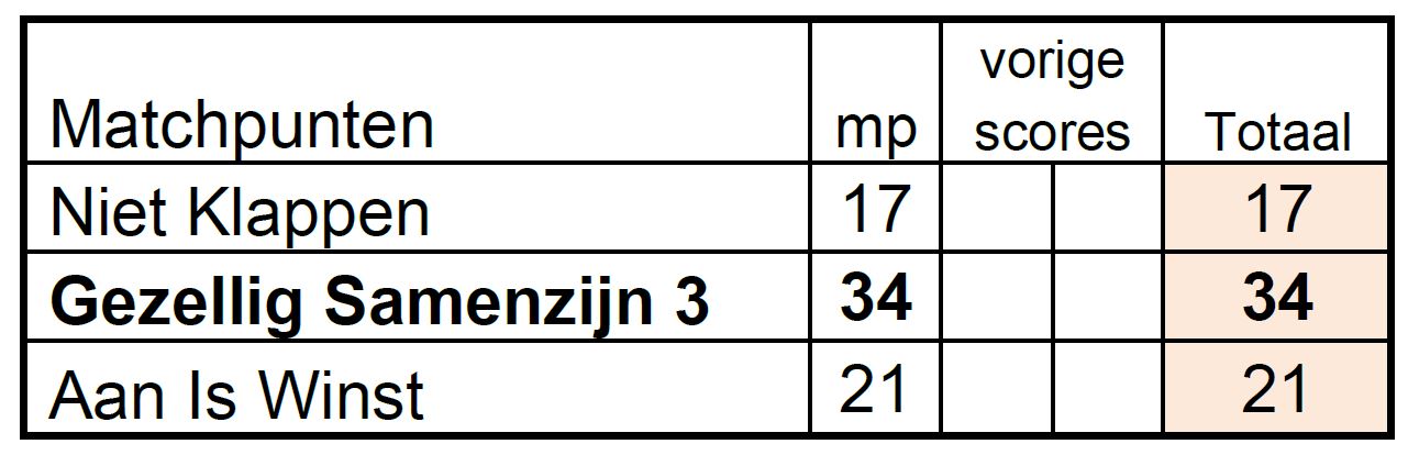 Zestallen Heren – Gezellig Samenzijn 3 door naar de finale Laat een reactie achter / 3-Wedstrijdberichten / Door Jan Blaauw Klik voor het overzicht van de geslagen punten op de tabel hier boven